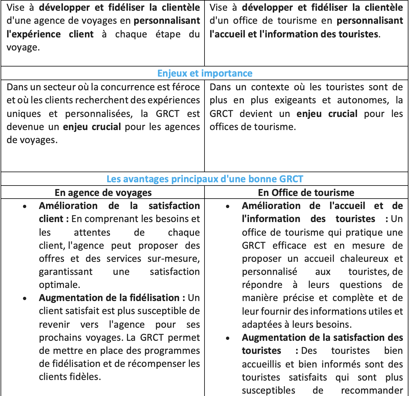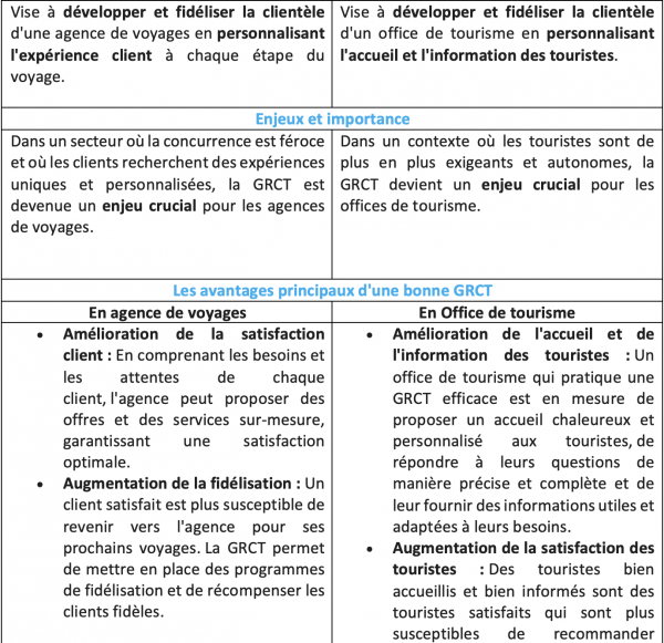 • La GRCT dans le secteur du tourisme : tableau comparatif Agence de voyages/OT.